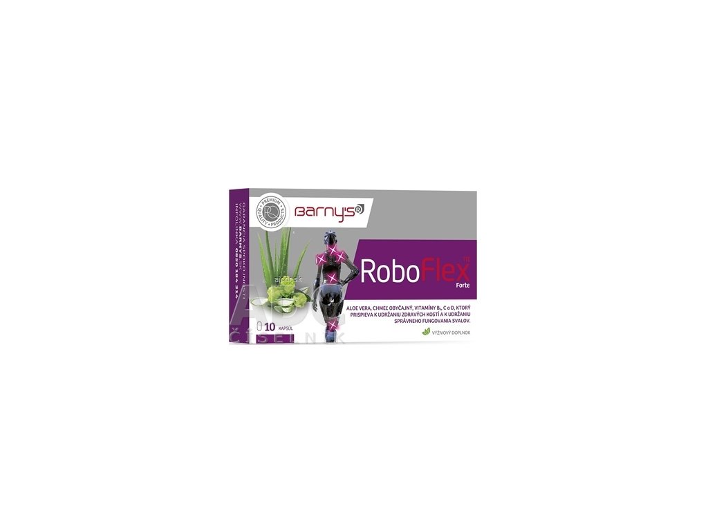 Výživový doplnok Barny´s RoboFlex™ Forte - je kombinovaný rastlinný a vitamínový výživový doplnok, ktorý obsahuje rastlinné extrakty z chmeľu obyčajného, aloe barbadoskej a vitamíny B6, C a D. *Vitamíny B6 a C prispievajú k správnemu fungovaniu nervového systému a k správnej funkcii psychiky. *Vitamín B6 prispieva k zníženiu vyčerpania a únavy. *Vitamín C prispieva k ochrane buniek pred oxidačným stresom. *Vitamín D prispieva k udržaniu zdravých kostí a k udržaniu správneho fungovania svalov.