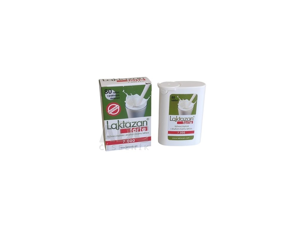 Tablety LAKTAZAN forte 7.000 v praktickom dávkovači.